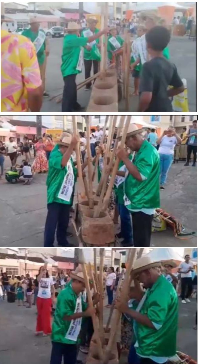 Em 2019, a tradicional Festa do Pilão ganhou destaque na Praça Manoel Novais, em Iguaí-BA, em uma apresentação gratuita conduzida pelo grupo do Mestre Joaquim Lacerda. O evento reuniu moradores e visitantes em um momento de celebração coletiva, onde 12 homens pisavam o café nos pilões enquanto mulheres peneiravam e entoavam cantigas tradicionais. A praça se transformou em palco de cultura viva, revelando a força dessa manifestação que conecta a comunidade às suas raízes. Mais do que uma apresentação, a Festa do Pilão reafirmou seu papel como patrimônio imaterial, fortalecendo a memória coletiva e a identidade cultural do povo iguaiense.